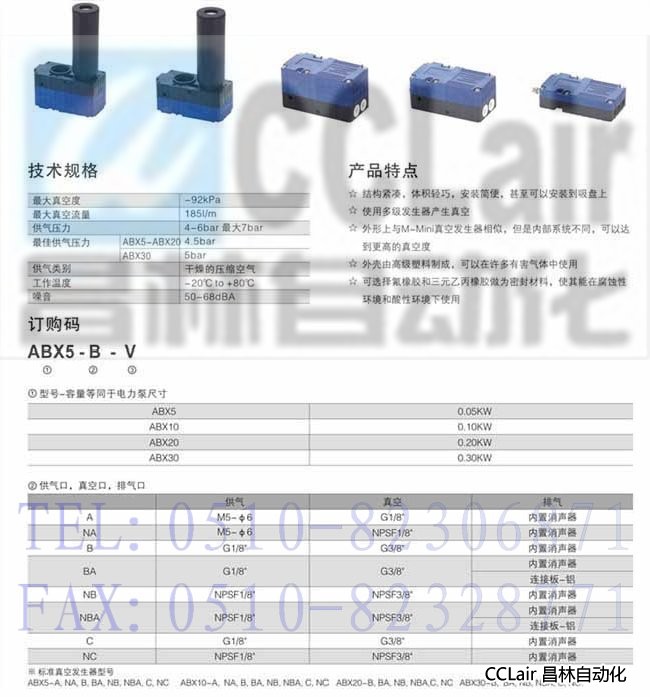 詳細(xì)信息 ABX5,ABX10,ABX20,ABX30,真空發(fā)生器,