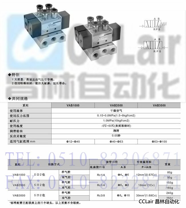 詳細(xì)信息 VAB1110,VAB1111,VAB1210,VAB1211,VAB1220,VAB1221,5口氣動(dòng)閥,