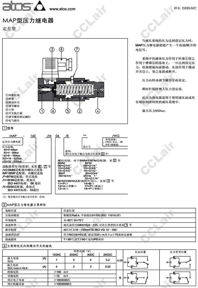 詳細(xì)信息 MAP-40,MAP-80,MAP-160,MAP-320,MAP-630,MAP-40/K18/E,MAP-80/K13/E,MAP-320/K17/E,阿托斯ATOS壓力繼電器