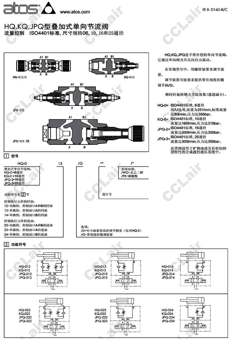JPQ-212,JPQ-213,JPQ-214,JPQ-222,JPQ-223,JPQ-224,JPQ-224/G,阿托斯ATOS疊加式單向節(jié)流閥