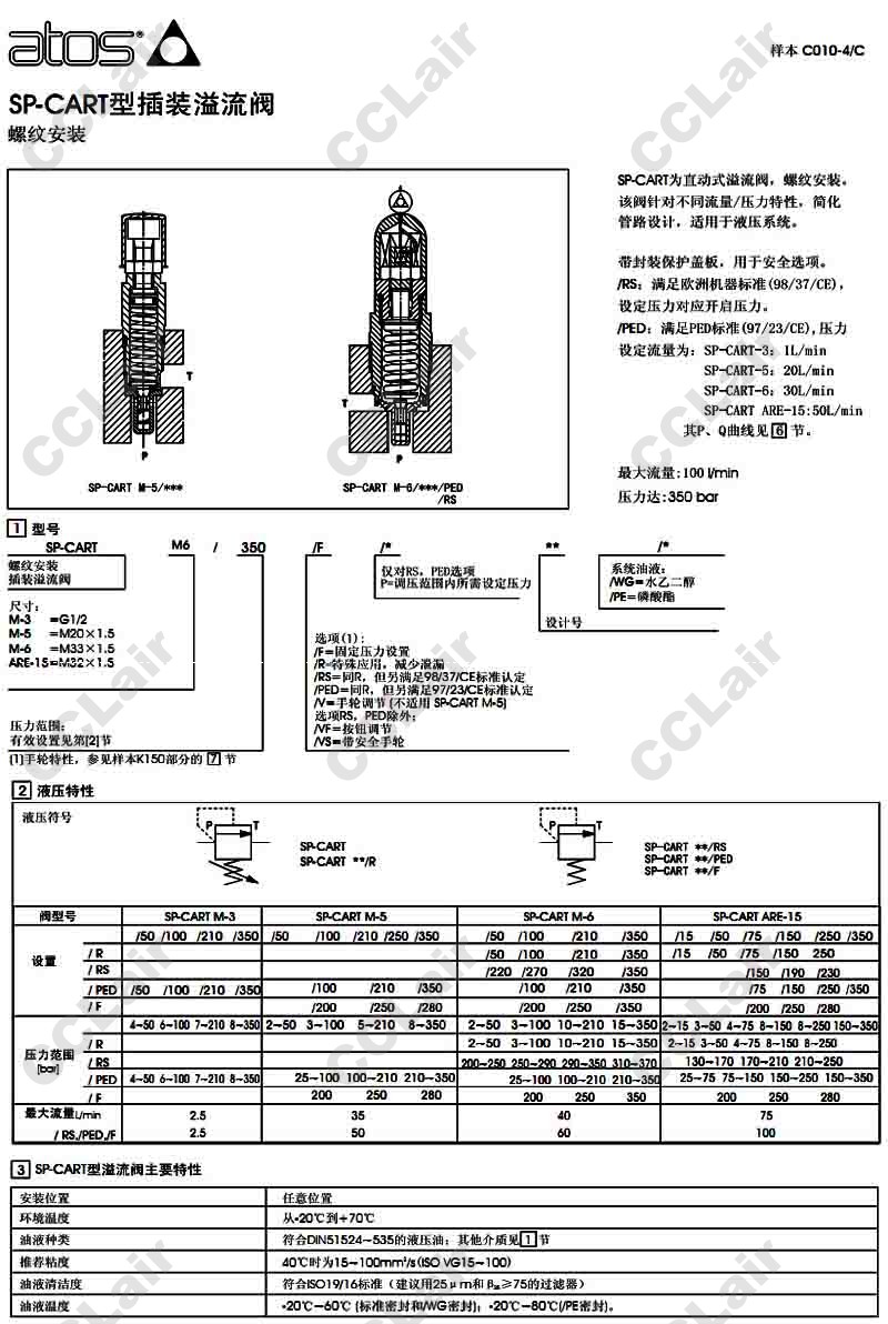 SP-CART M-3,SP-CART M-5,SP-CART M-6,SP-CART ARE-15,SP-CART M-5/200/F,阿托斯ATOS插裝溢流閥