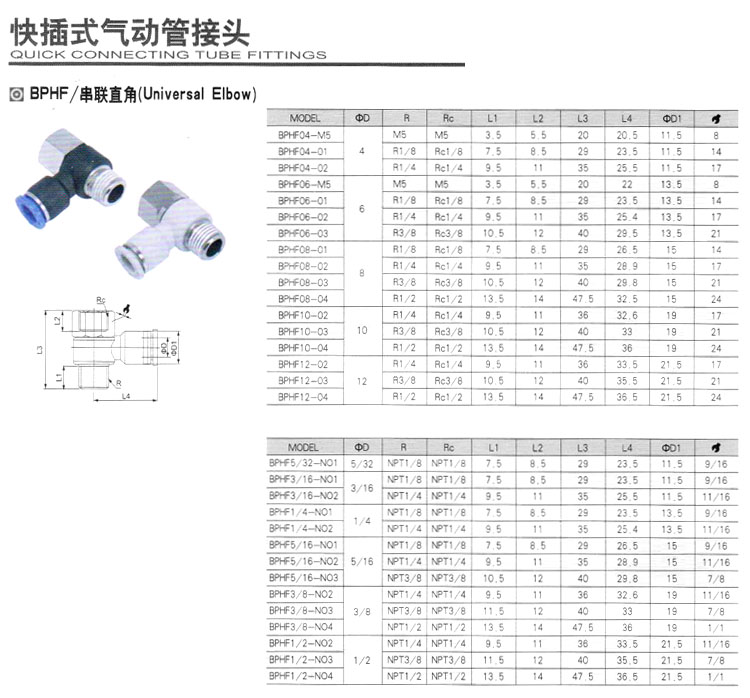 BPHF04,BPHF06,BPHF08,BPHF10,BPHF12,BPHF5/32,BPHF3/16,BPHF1/4,BPHF3/8,BPHF1/2,快插式氣動(dòng)管接頭