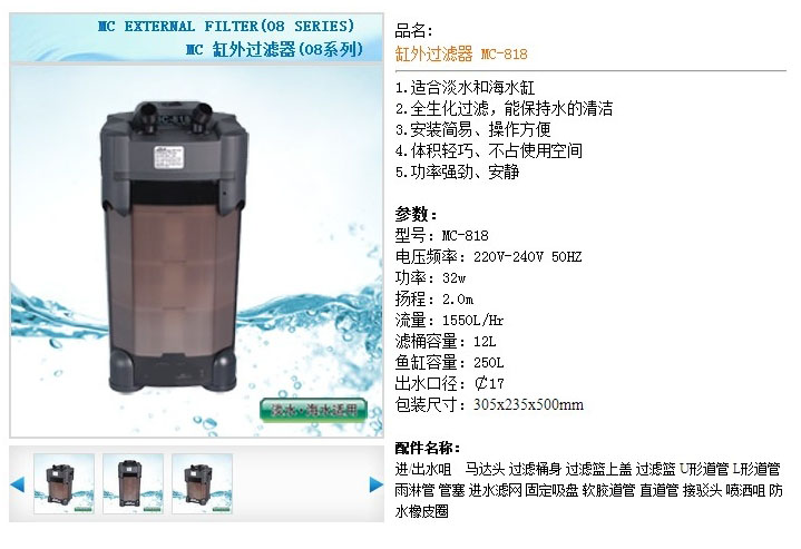 詳細(xì)信息 MC-818,缸外過濾器