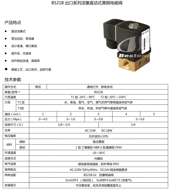 詳細信息 BS21B-DN1,BS21B-DN2,BS21B-DN3,BS21B-DN4,BS21B-DN5,微型防爆電磁閥
