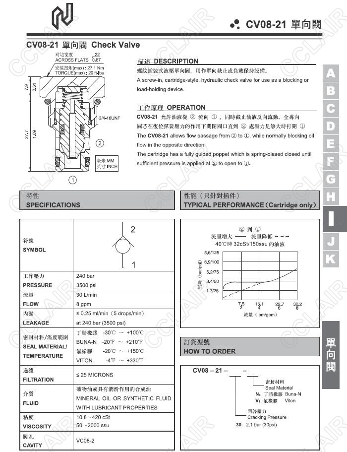 詳細(xì)信息 CV08-21-30-N,CV08-21-30-V,Northman臺灣北部精機,單向閥