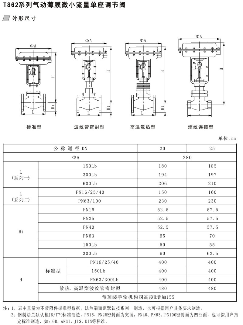 T862-16B,T862-25B,T862-40B,T862-63B,T862-100B-DN20,氣動(dòng)薄膜微小流量單座調(diào)節(jié)閥