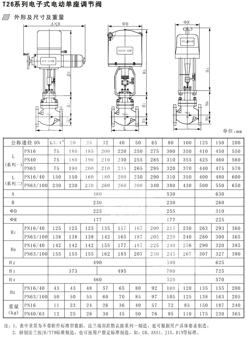 T26-16C,T26-40C,T26-63C,T26-100C,T26-16B,T26-40B,T26-63B,電動單座調(diào)節(jié)閥