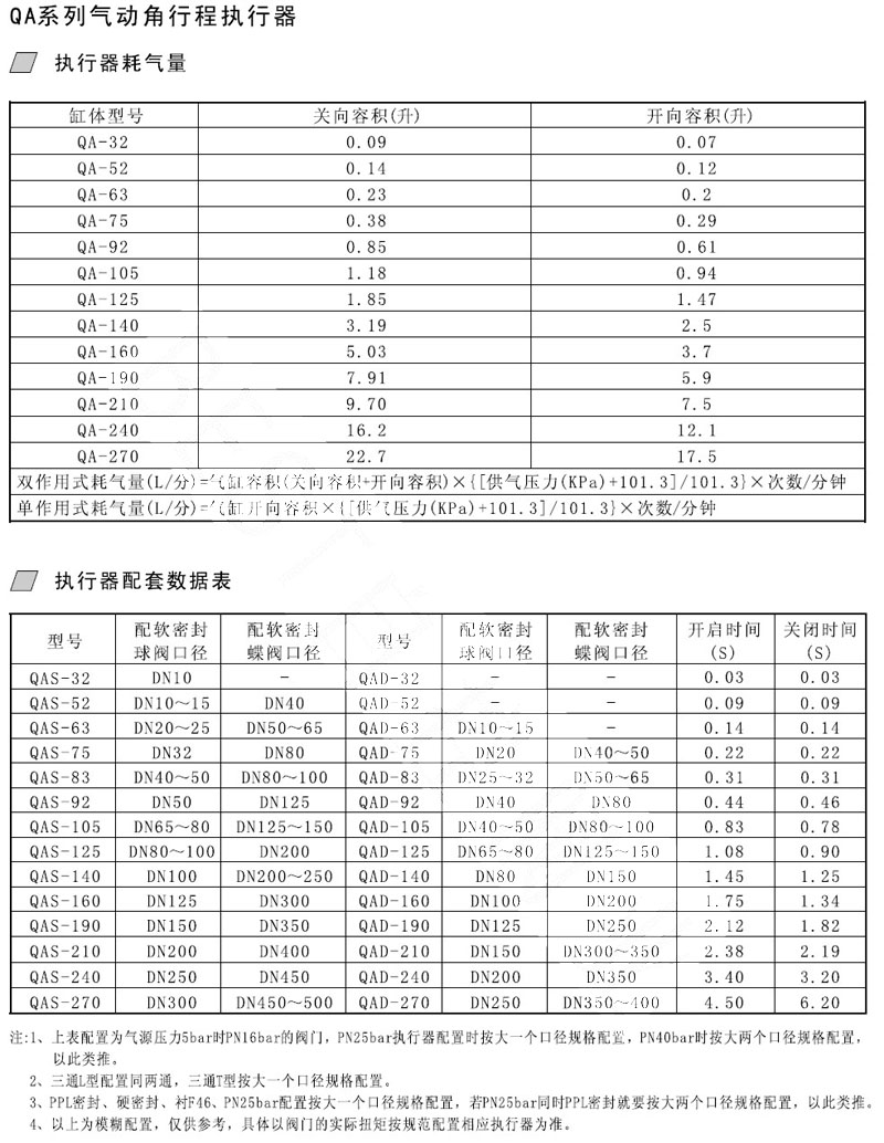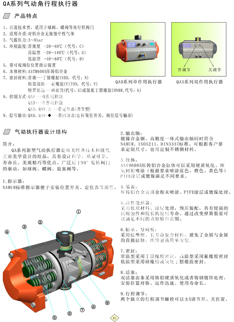QAD-52,QAD-63,QAS-63,QAS-75,QA-83,QA-92,QA-105,氣動(dòng)執(zhí)行器