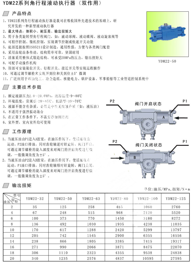 詳細(xì)信息 YDM22-32,YDM22-50,YDM22-63,YDM22-80,YDM22-100,YDM22-125,液動執(zhí)行器