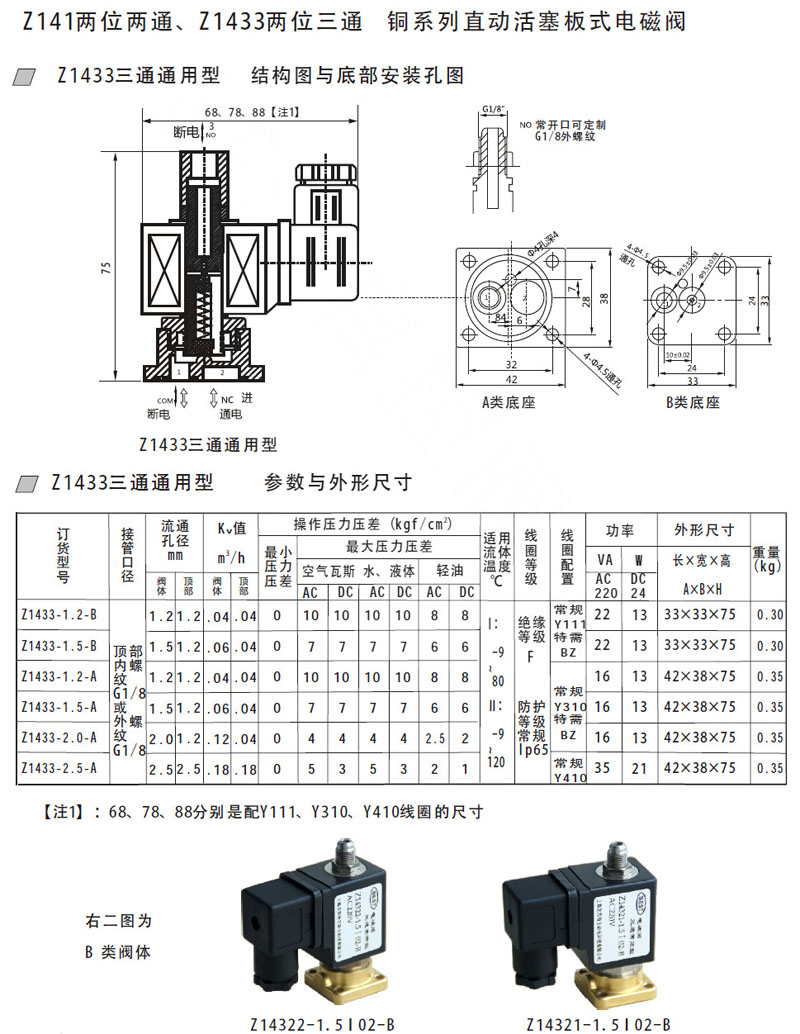 Z14321-1.2-B,Z14322-1.5-B,Z1433-1.2-B,Z141-1.2-A,Z14321-2.5-A,直動(dòng)活塞板式電磁閥