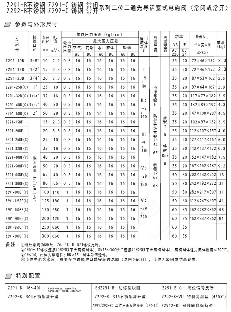 Z291-10B,Z291-15B,Z291-25BC,Z291-32BF,Z291-40BF,Z291-50BFC,先導(dǎo)活塞式電磁閥