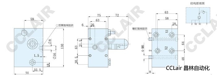 ①名稱代號(hào):補(bǔ)償調(diào)壓閥(液控) ①名稱代號(hào):節(jié)流調(diào)壓閥(液控)