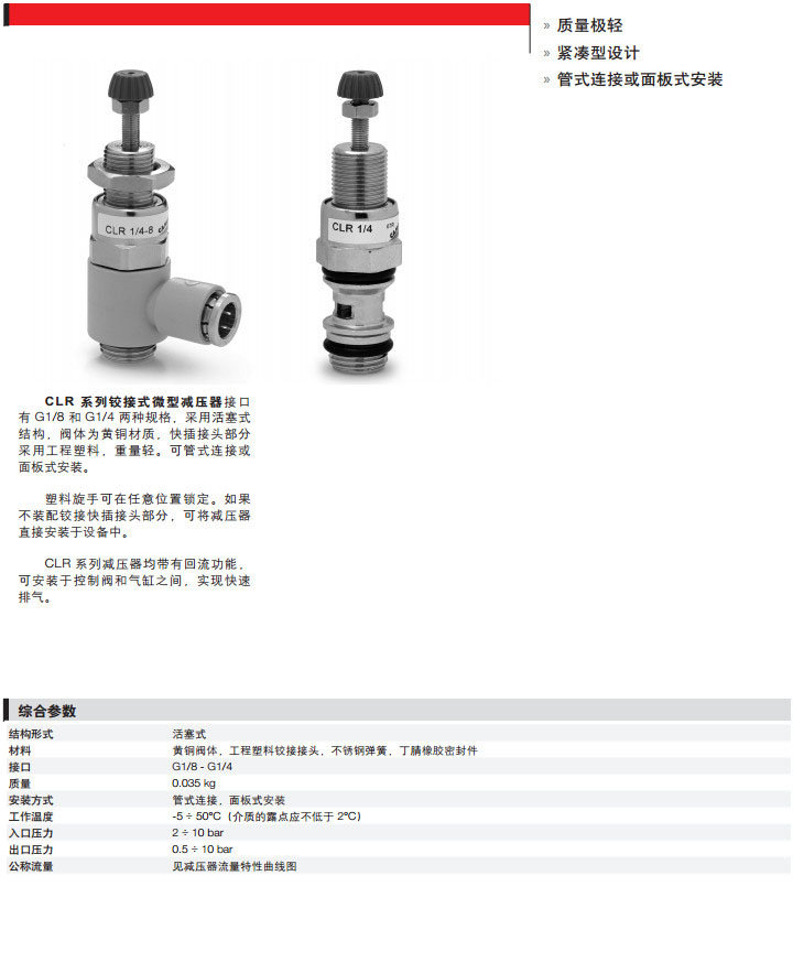 CLR1/8-01-4,CLR1/8-01-6,CLR1/8-01-8,CLR1/4-01-4,CLR1/4-01-6,CLR1/4-01-8,camozzi鉸接式微型減壓器