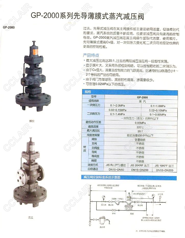詳細信息 GP-2000,GP-2000-DN15,GP-2000-DN20,GP-2000-DN25,GP-2000-DN32,先導薄膜式蒸汽減壓閥