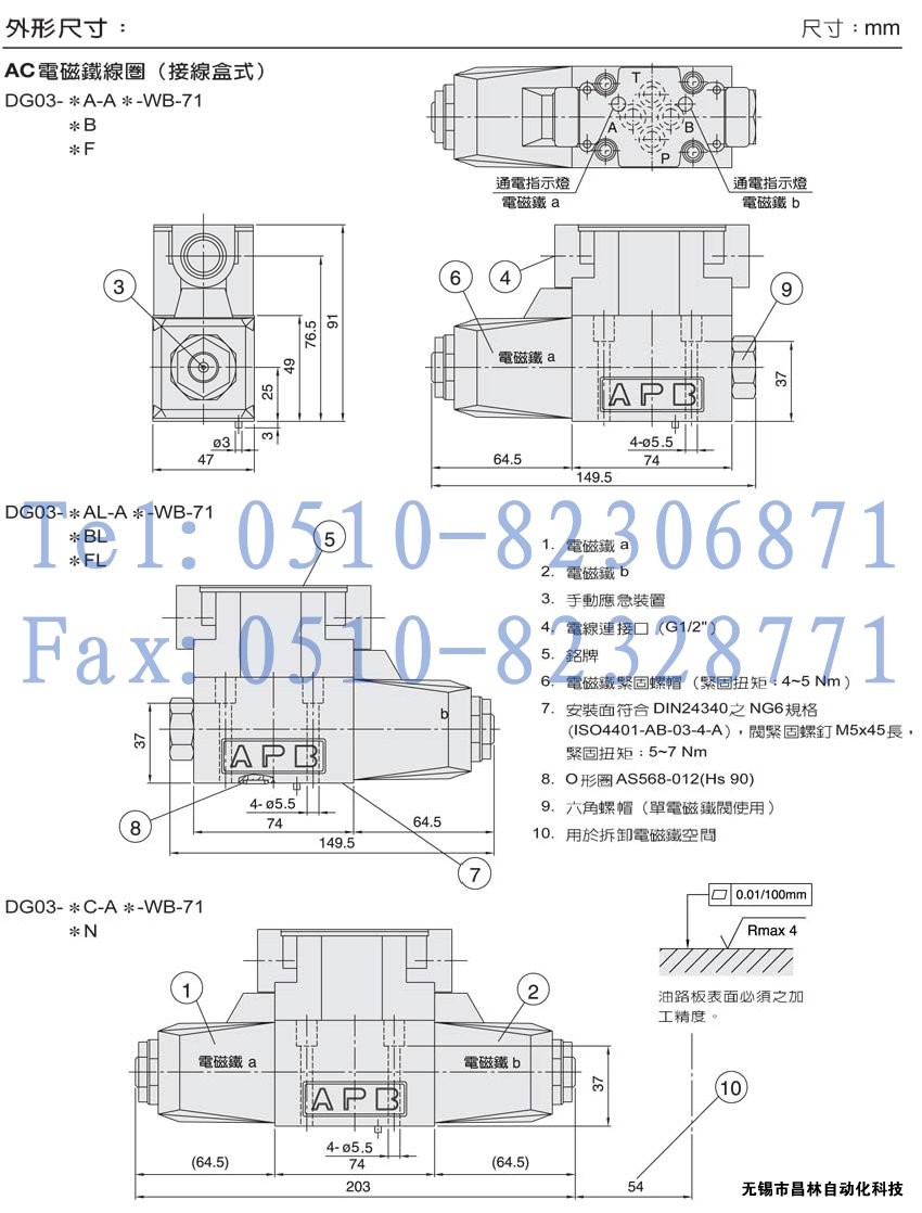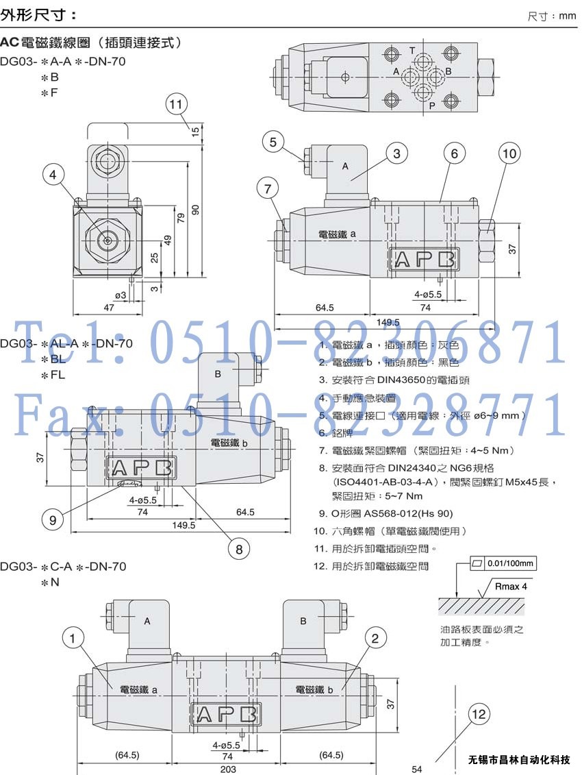 DG03-5AL,DG03-6AL,DG03-7AL,DG03-8AL,DG03-11AL,DG03-22AL,DG03-31AL,濕式電磁鐵操作換向閥