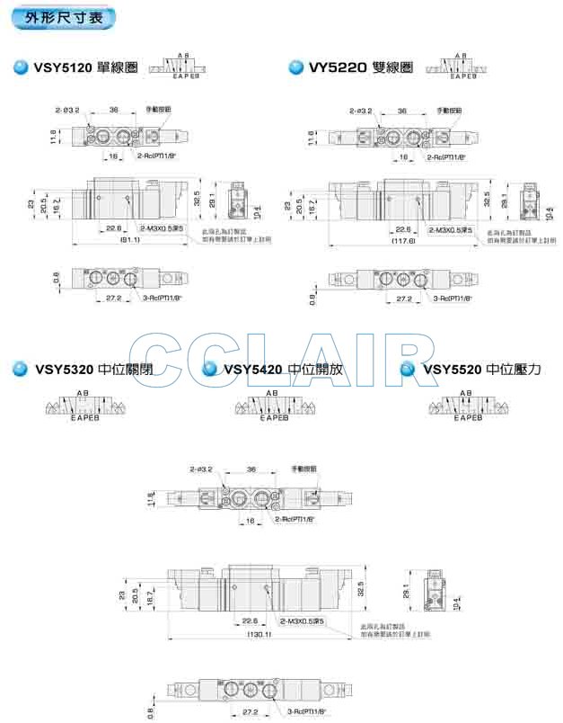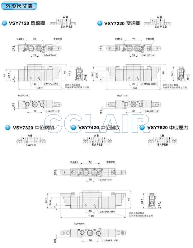 詳細信息 VSY3120,VSY3220,VSY3320,VSY3420,VSY3520電磁閥