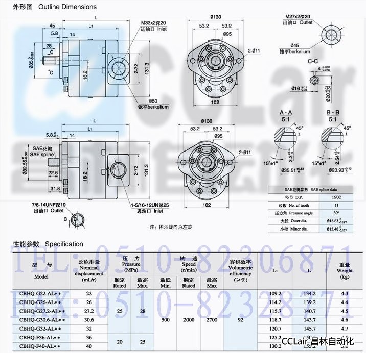 ⑥ 軸伸形式 Shaft end Φ: SAE花鍵 SAE spline H: 矩形花鍵 Rectangle spline