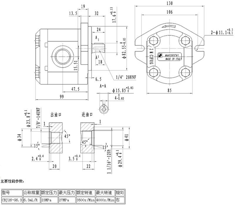 詳細(xì)信息 CBJ26-G6.3,齒輪泵