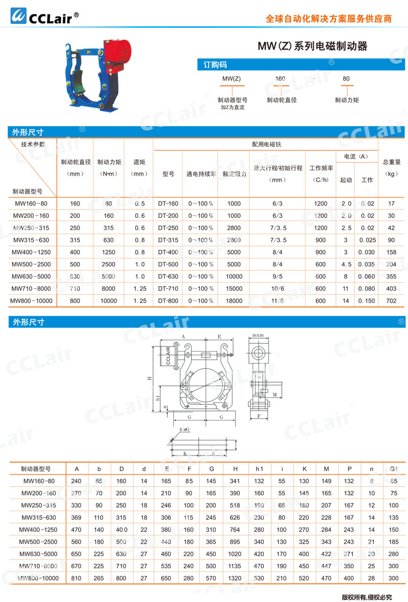 MW160,MW200,MW250,MW315,MW400,MW500,MW630,MW710,MW800,MW800-10000,電磁制動(dòng)器