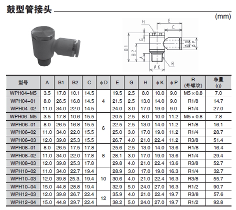 詳細(xì)信息 WPH04-M5,WPH04-01,WPH04-02,WPH06-M5,WPH06-01,WPH06-02,WPH06-03,WPH08-01,鼓型管接頭