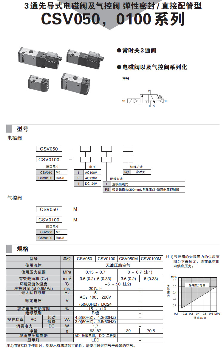 CSV050-1LNC,CSV050-2LNC,CSV050-4LNC,CSV0100-1LNC,CSV0100-2LNC,CSV0100-4LNC,電磁閥