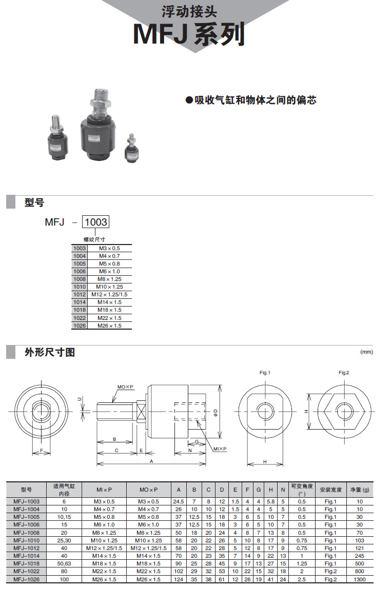 詳細(xì)信息 MFJ-1003,MFJ-1004,MFJ-1005,MFJ-1006,MFJ-1008,MFJ-1010,浮動接頭
