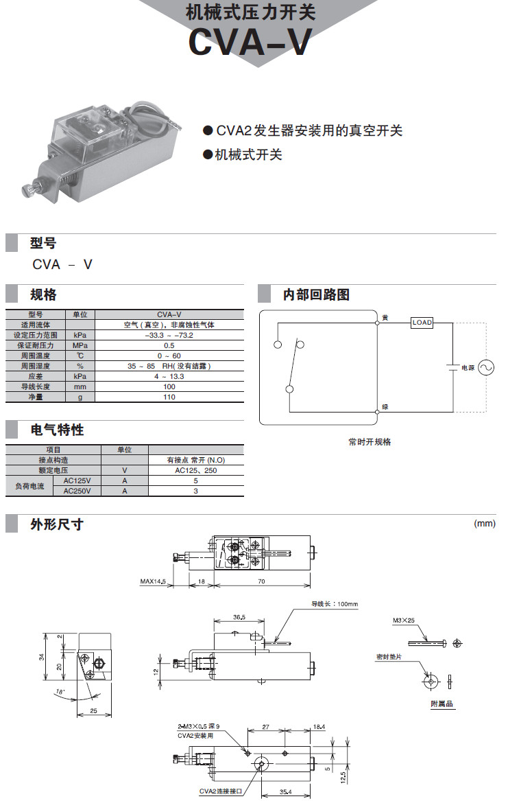 詳細(xì)信息 CVA-V,機(jī)械式壓力開關(guān)