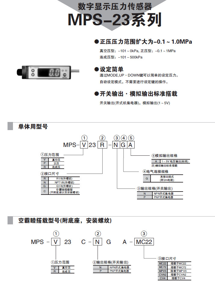 MPS-V23R-NGA,MPS-P23N-NGA,MPS-R23G-NGA,MPS-V23R-PGA,壓力傳感器