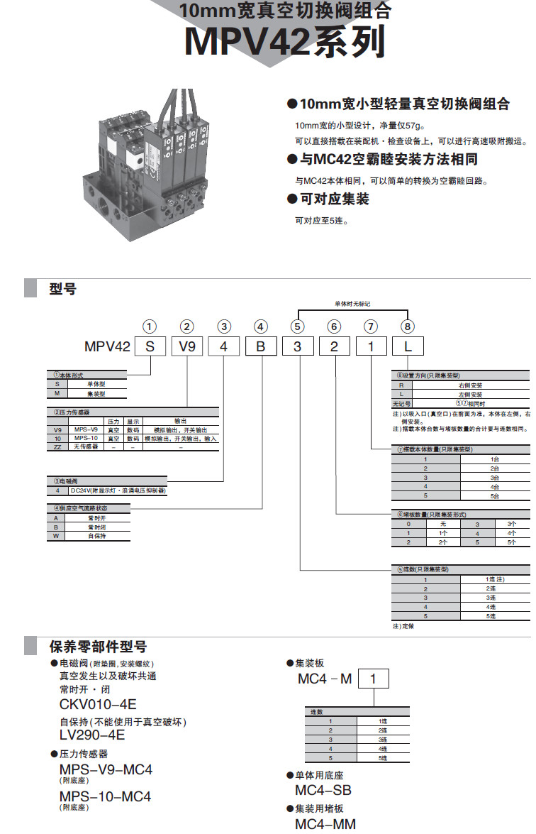 MPV42-S-V9,MPV42-S-10,MPV42-S-ZZ,MPV42-M-V9,MPV42-M-10,MPV42-M-ZZ,真空切換閥組合