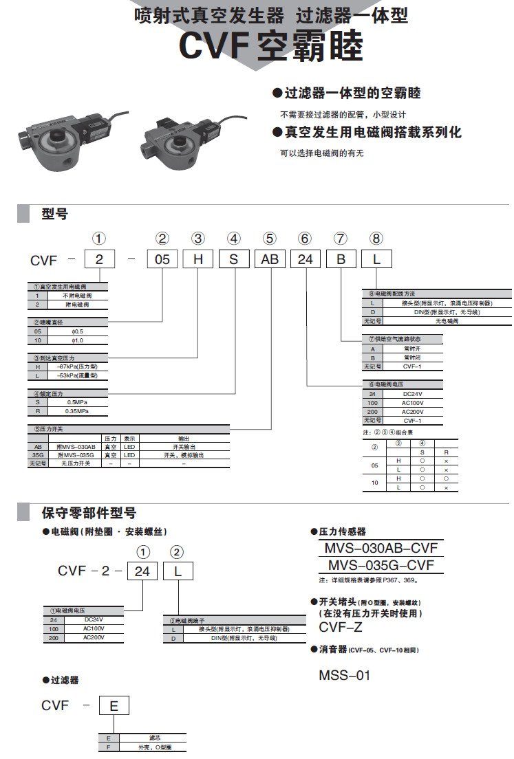CVF-1-05-H,CVF-1-10-H,CVF-2-05-H,CVF-2-10-H,CVF-1-10-L,CVF-2-05-L,噴射式真空發(fā)生器