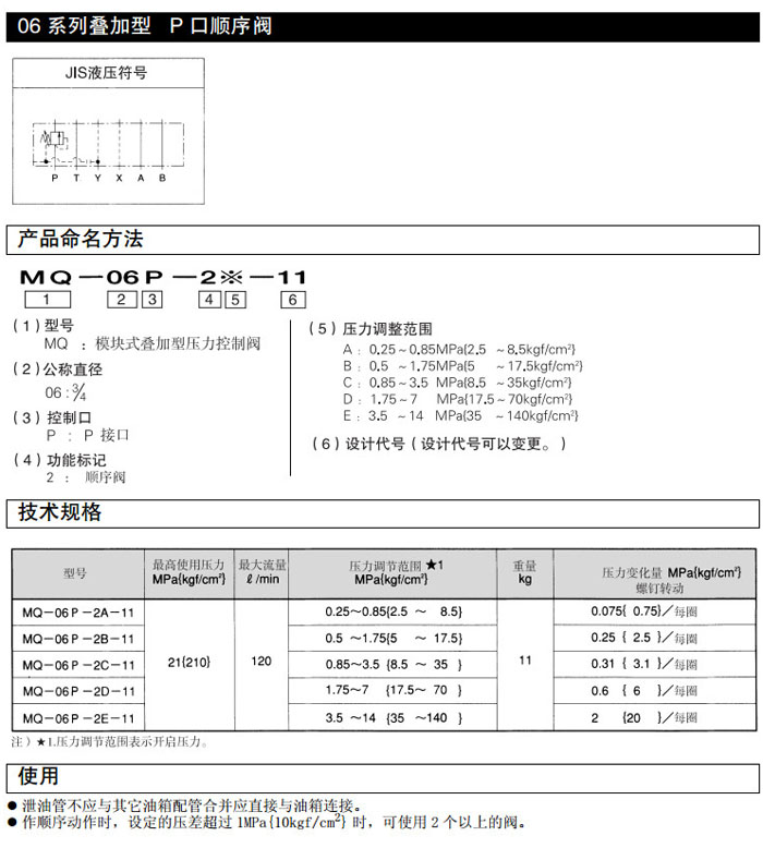 詳細信息 MQ-06P-2A-11,MQ-06P-2B-11,MQ-06P-2C-11,MQ-06P-2D-11,MQ-06P-2E-11,DAIKIN疊加型順序閥
