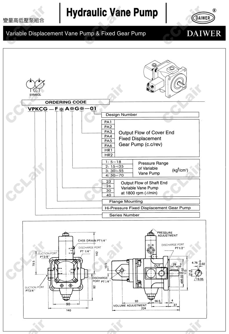 詳細(xì)信息 VPKCG-F23A,VPKCG-F26A,VPKCG-F30A,VPKCG-F40A,VPKCG-F40A4GHR2-01,VPKCG-F26A4GHR2-01,DAIWER變量高低壓泵組合
