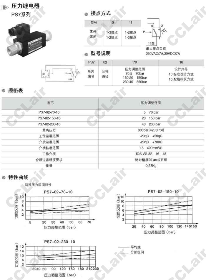 詳細信息 PS7-02-70-10,PS7-02-150-10,PS7-02-230-10,壓力繼電器,無錫昌林