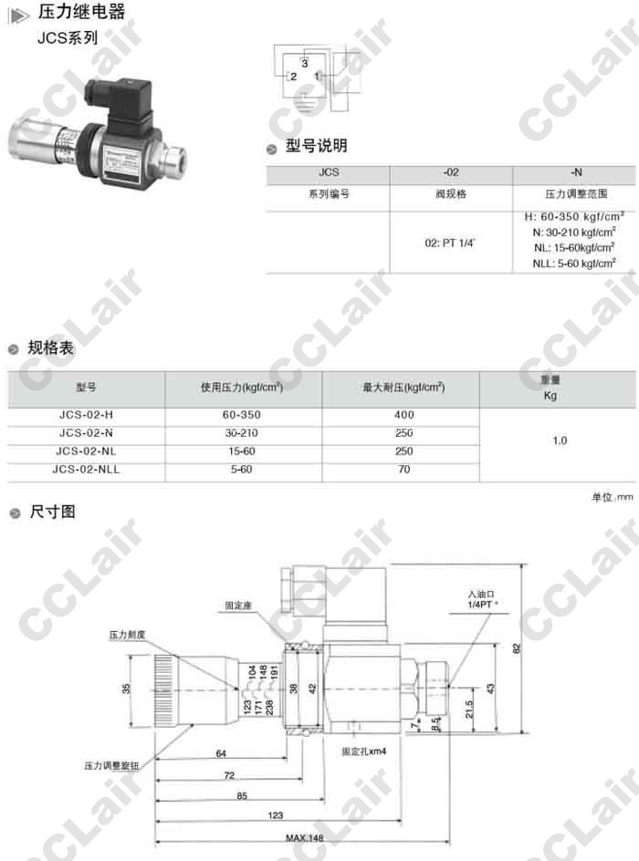 JCS-02-H,JCS-02-N,JCS-02-NL,JCS-02-NLL,壓力繼電器