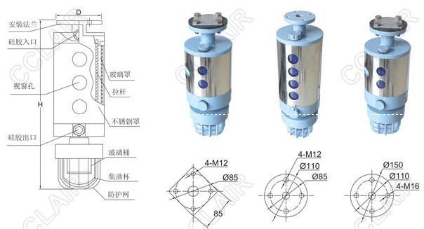 吸濕器按硅膠可分為白色硅膠吸濕器和變色硅膠吸濕器;按功能可分為普通(或單吸)吸濕器和雙呼吸吸濕器。 吸濕器硅膠顏色為:白色、藍(lán)色兩種型號(hào): 0.1kg 、 0.2kg 、 0.5kg 、 1kg 、 2kg 、 3kg 、 5kg 、8kg、 10kg 技術(shù)參數(shù):
