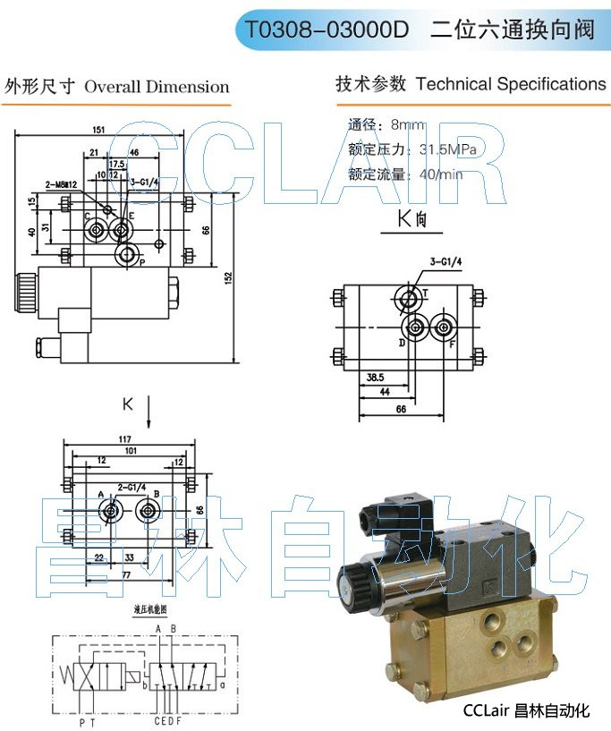 T0308-03000D,二位六通換向閥