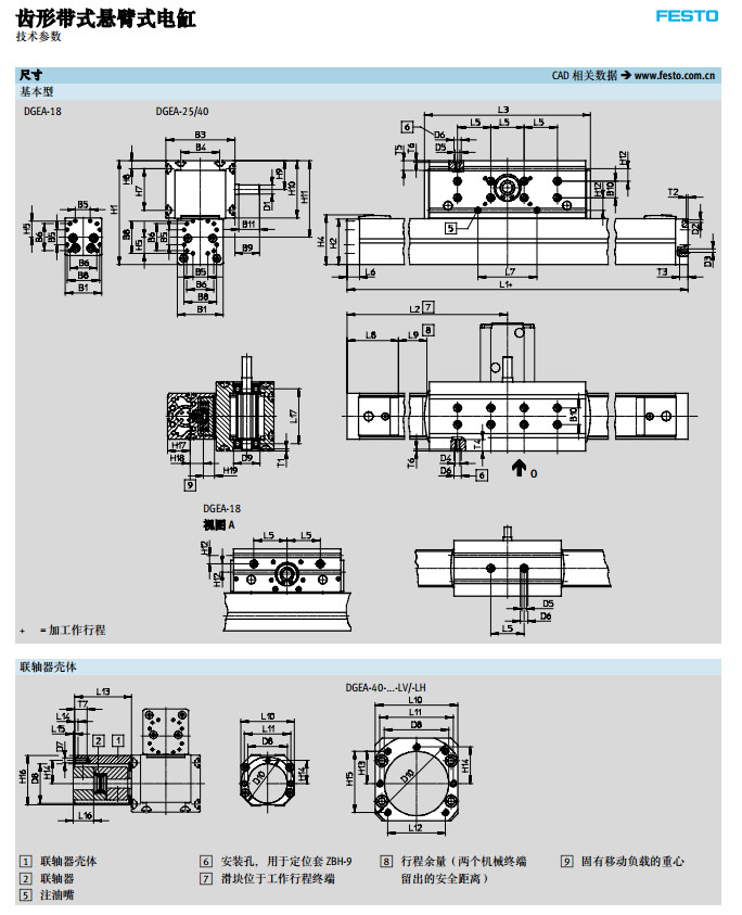 DGEA-18-500-ZR-WH,DGEA-25-500-ZR-WH,DGEA-40-500-ZR-WH,festo齒形帶式懸臂式電缸