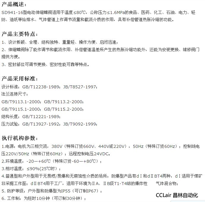 詳細信息 SD941-16,電動伸縮蝶閥