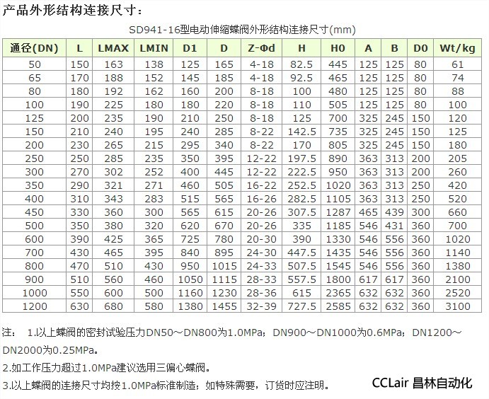 SD941-16,電動伸縮蝶閥