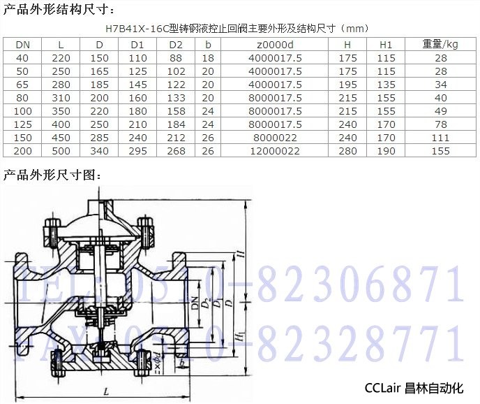 H7B41X-16,H7B41X-16C,鑄鋼液控止回閥