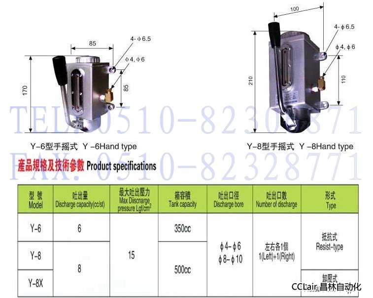 詳細(xì)信息 Y-6,Y-8,Y-8X,手搖泵