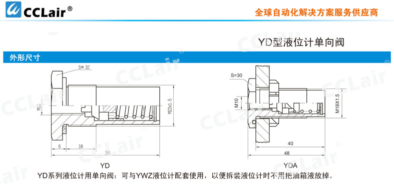 詳細信息 YD22*1.5,YD-M22×1.5,液位單向閥