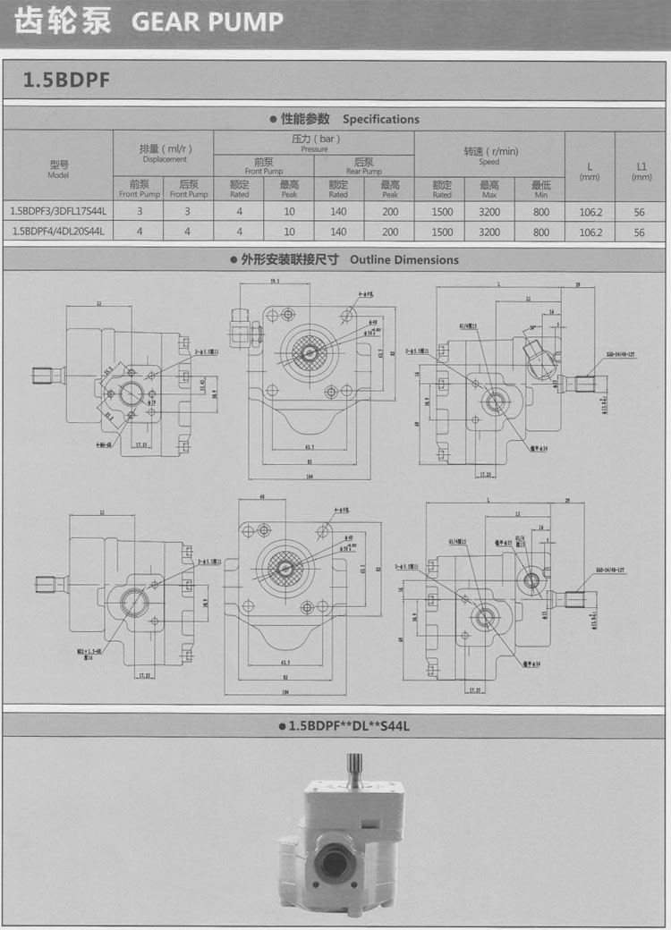 詳細信息 1.5BDPF3/3DFL17S44L,1.5BDPF4/4DFL20S44L,齒輪泵