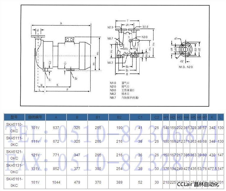 SKA型水環(huán)式真空泵(簡稱:SKA真空泵),適于抽除氣體和水蒸汽。吸氣壓力可以達(dá)到33mbar絕壓(97%真空度)當(dāng)真空泵在吸氣壓力低于80mbar的狀態(tài)下長期工作時,應(yīng)聯(lián)接汽蝕保護(hù)管以對泵進(jìn)行保護(hù),如配大氣噴射器(見附件表)吸氣壓力可達(dá)10mbar,噴射器可直接裝在真空泵上。作為壓縮機用時,其壓力最大至0.26mbar(絕壓)。