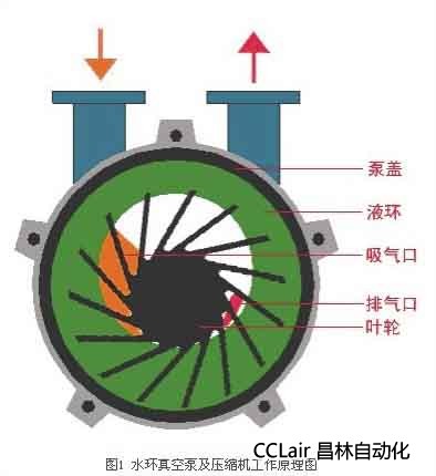 SKA型水環(huán)式真空泵如圖(1)所示葉輪3偏心地安裝在泵體之內(nèi),起動時向泵內(nèi)注入一定高度的水,因此當(dāng)葉輪3旋轉(zhuǎn)時,水受離心力的作用而在泵體內(nèi)壁形成一旋轉(zhuǎn)水環(huán)1,水環(huán)下部內(nèi)表面與輪轂相切,沿箭頭方向旋轉(zhuǎn),在前半轉(zhuǎn)過程中,SKA型水環(huán)式真空泵水環(huán)內(nèi)表面逐漸與輪轂脫離,因此在葉輪葉片間與水環(huán)形成封閉空間,隨著葉輪的旋轉(zhuǎn),該空間逐漸擴(kuò)大,空間氣體壓力降低,氣體自圓盤吸氣口被吸入;在后半轉(zhuǎn)過程中,水環(huán)內(nèi)表面逐漸與輪轂靠近,葉片間的空間逐漸縮小,空間氣體壓力升高,高于排氣口壓力時,葉片間的氣體自圓盤排氣口被排出。如此葉輪每轉(zhuǎn)動一周,葉片間的空間吸排氣一次,許多空間不停地工作,SKA型水環(huán)式真空泵就連續(xù)不斷地抽吸或壓送氣體。
