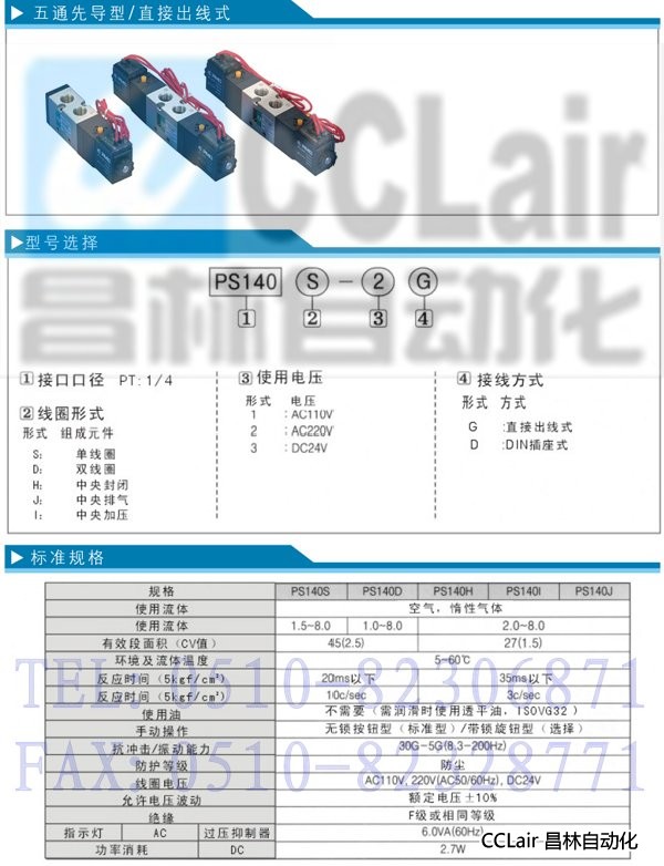 詳細(xì)信息 PS140S,PS140D,PS140H,PS140I,PS140J,五通先導(dǎo)型電磁閥