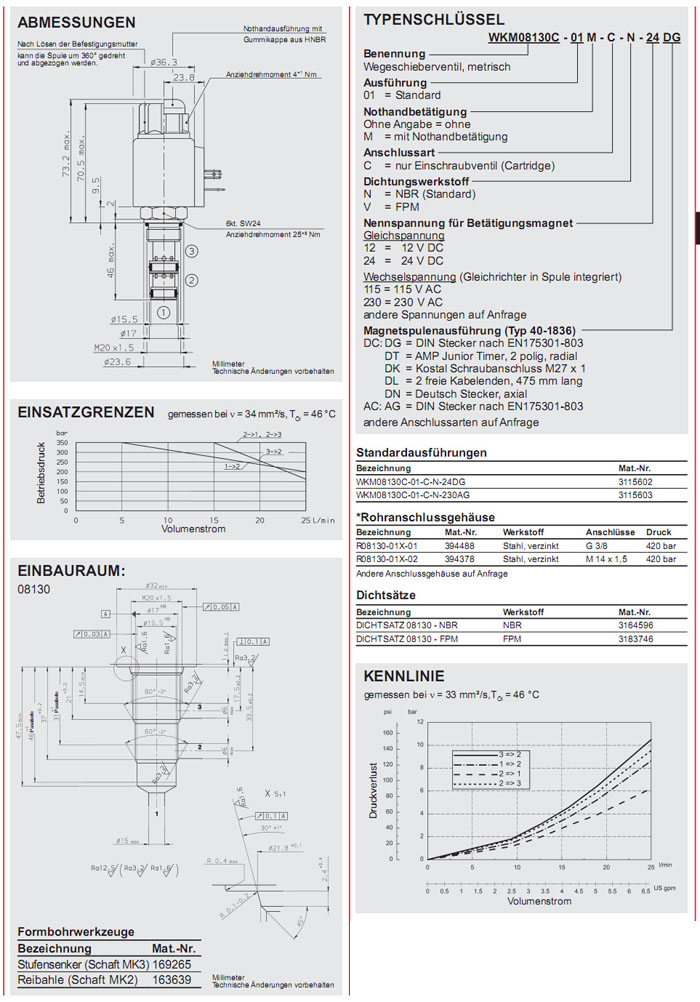 首頁 > 產(chǎn)品&解決方案 > WKM08130C-01-C-N-24DG,WKM08130C-01-C-N-230AG,HYDAC二位三通方向滑閥