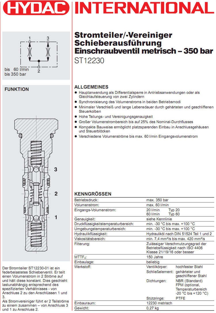 ST12230-01X-20,ST12230-04X-60,HYDAC流量分配/合成器 詳細(xì)信息 ST12230-01X-20,ST12230-04X-60,HYDAC流量分配/合成器
