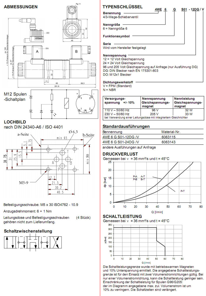 4WE6GS01-12DG/V,4WE6GS01-24DG/V,HYDAC電磁4/3方向滑閥
