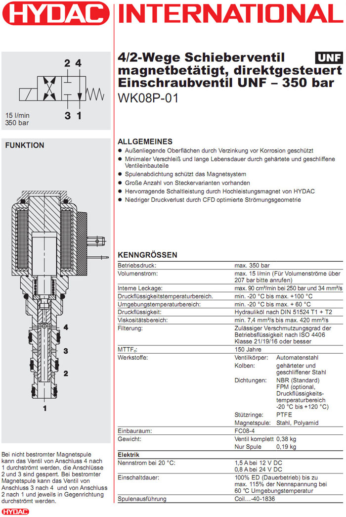 首頁 > 產(chǎn)品&解決方案 > WK08P-01-C-N-24DG,WK08P-01-C-N-230AG,HYDAC電磁4/2方向滑閥